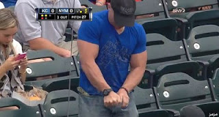 أحرج مصور مباراة بيسبول شاب ذو عضلات مفتولة لم يستطع فتح زجاجة مياه صغيرة، وحاول اكثر من مرة ولكن دون جدوى لتنطلق التعليقات الساخرة من الرجل الذي لم يستطع اتمام مهمته