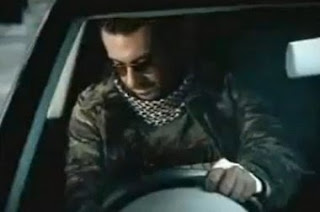 الدعاية رجل يقود سيارة فوكس وهو يرتدي كوفية فلسطينية حول عنقه، ويوقف